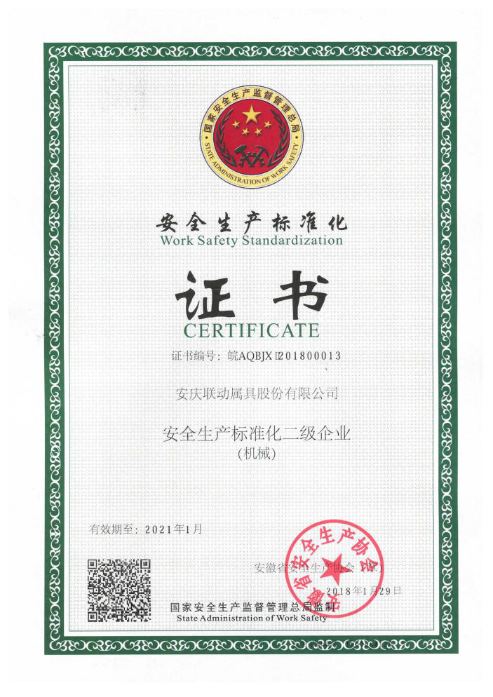國家安全生產(chǎn)標(biāo)準(zhǔn)化二級(jí)企業(yè)