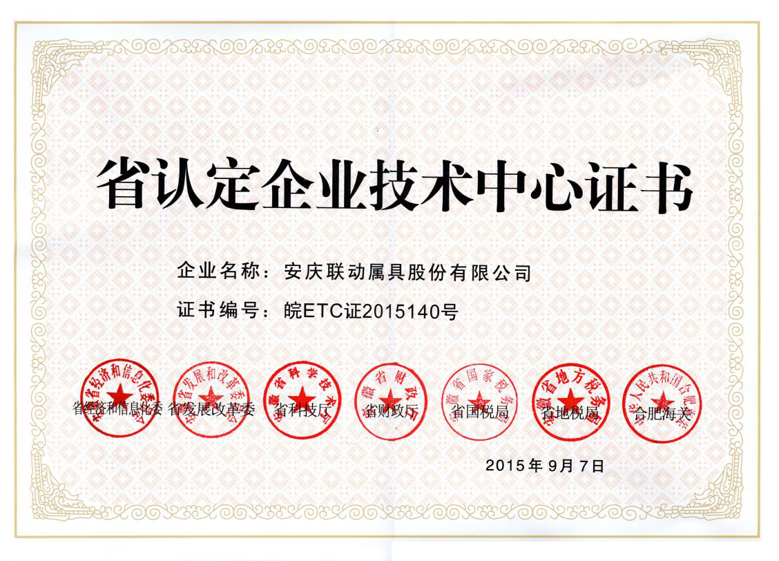 省認(rèn)定企業(yè)技術(shù)中心證書